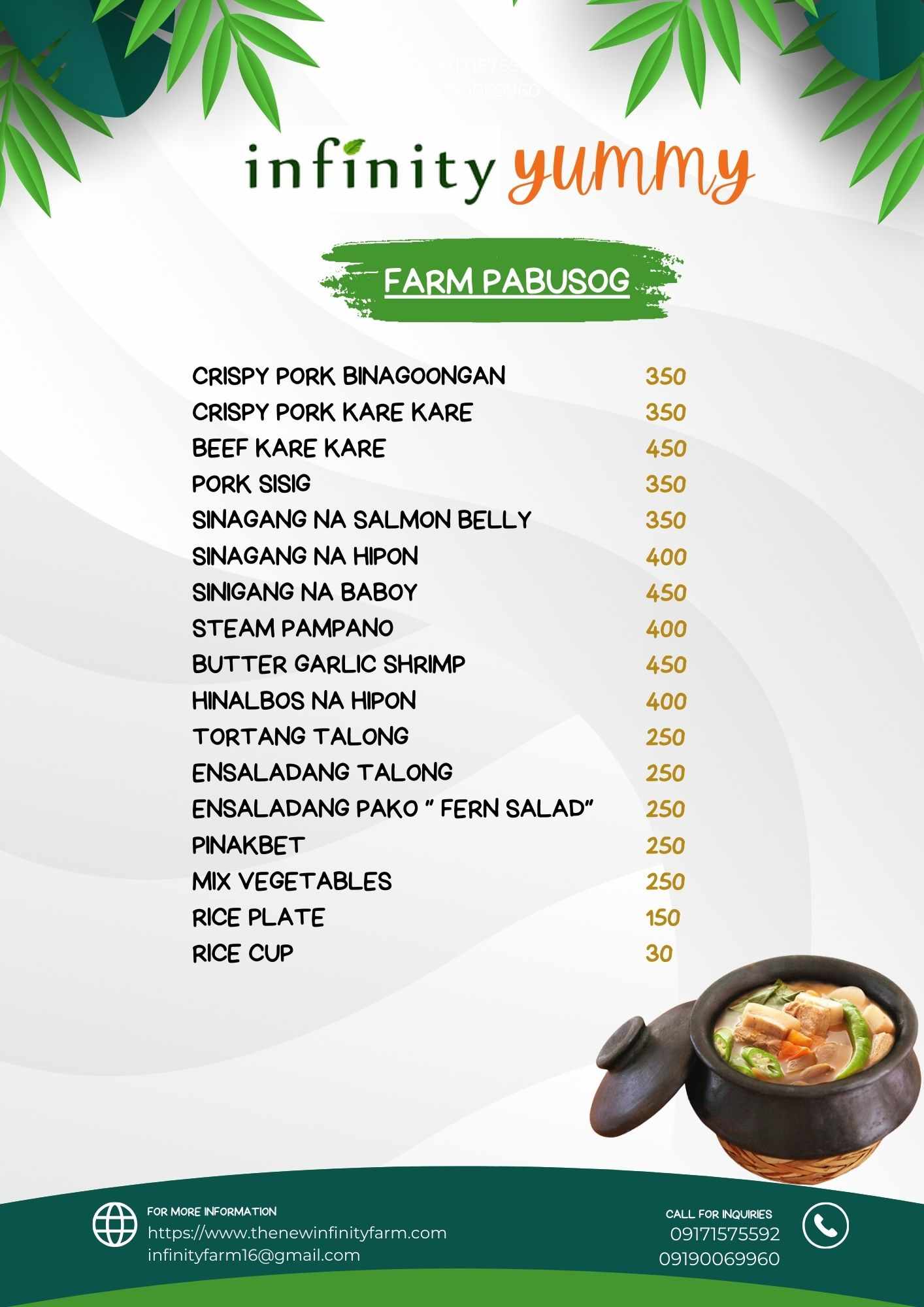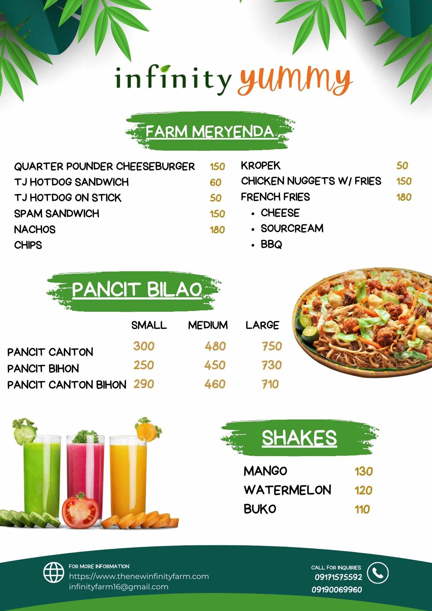 Infinity Farm Food Menu